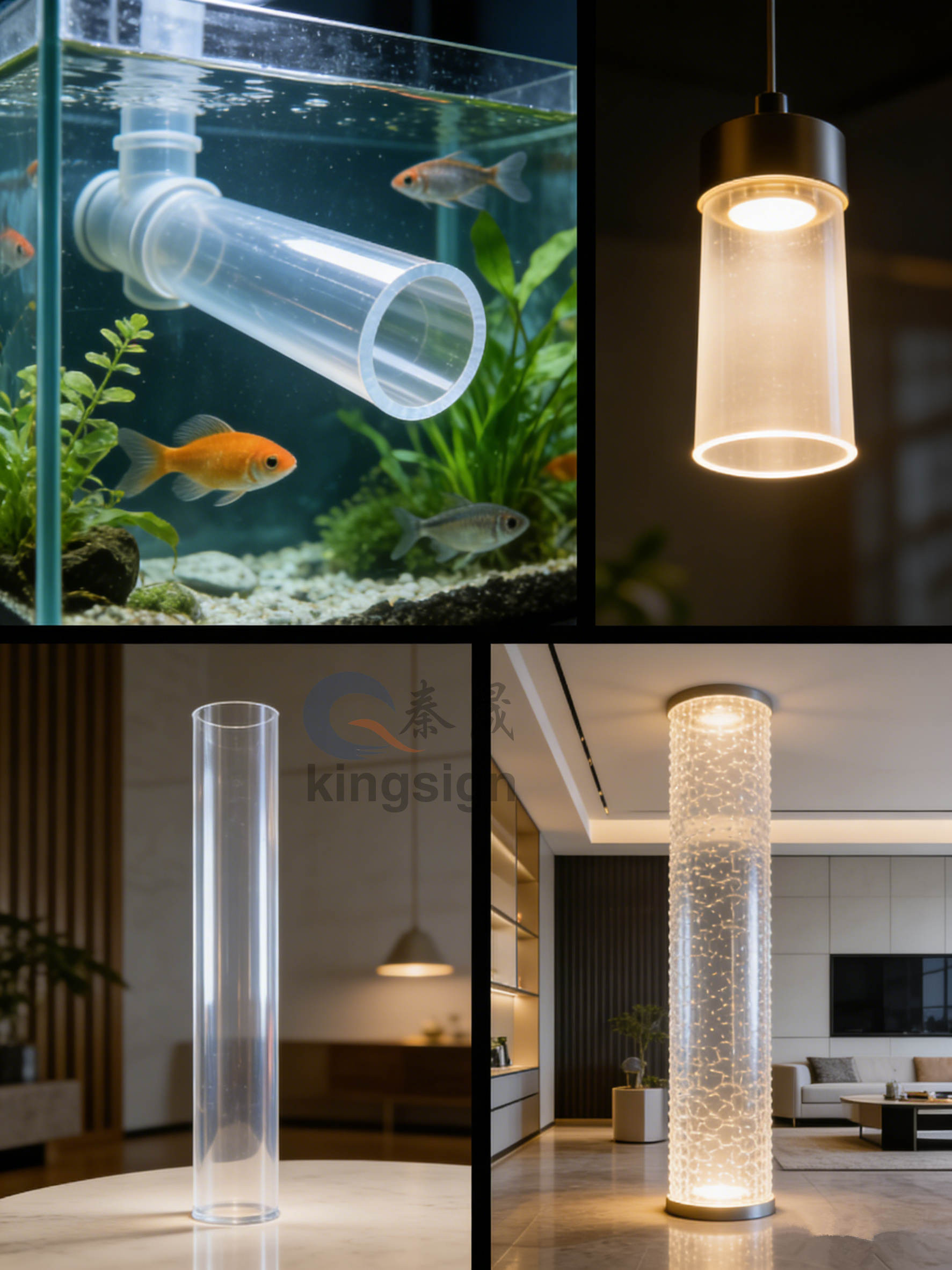 Kingsignse concentrează pe claritate ridicată, grosime uniformă a pereteluicilindri acrilicicare oferă o transmisie excepțională a luminii, o rezistență puternică la impact și o rezistență excelentă la intemperii. Folosite pe scară largă în sistemele de iluminat, decorațiunile arhitecturale, dispozitivele medicale, tratarea apei, sistemele de acvariu și echipamentele industriale, tuburile noastre acrilice acceptă dimensiuni standard și personalizate, culori și servicii de procesare, inclusiv tăiere, găurire, flanșare și lipire.
