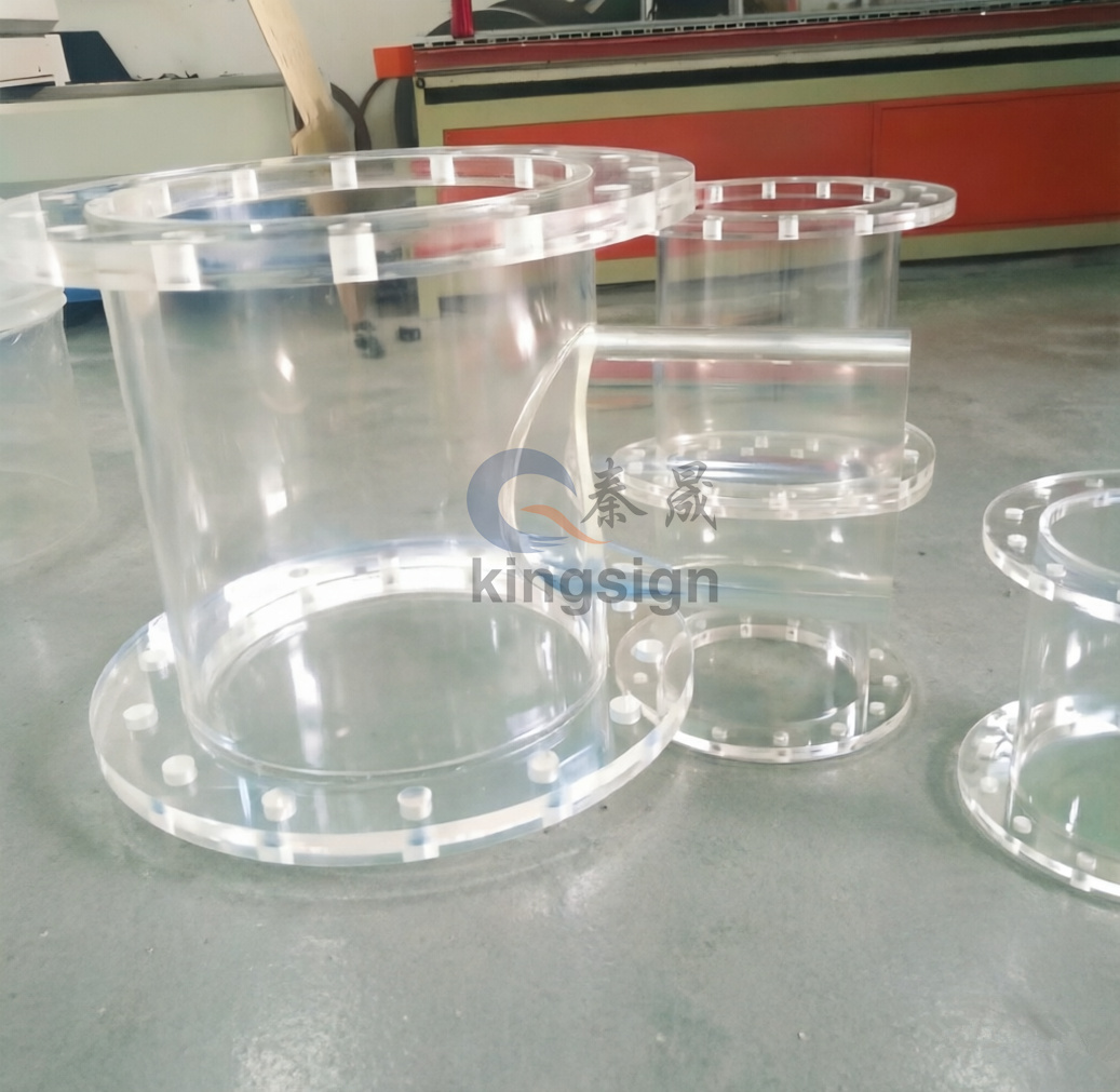 Aceste țevi acrilice cu flanșe sunt utilizate pe scară largă în sistemele de instalații pilot, configurații de cercetare educațională, echipamente de monitorizare a mediului și sisteme de distribuție a fluidelor de joasă presiune, unde transparența și fiabilitatea sunt esențiale. Indiferent dacă aveți nevoie de o dimensiune standard sau de o soluție complet personalizată, Kingsign oferă componente de flanșă acrilice fabricate cu toleranțe strânse pentru performanță constantă în operațiunile dumneavoastră.